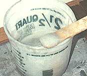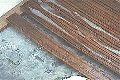 Apply this mix to the back of the boards using a plastic spreader. Make sure that the saw kerfs are completely filled and that the entire surface of the board is covered with a film approx. 1/16" thick.