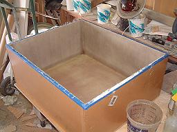 (date mold started 12/08/02 -- date first part was pulled 12/11/02) The function of the fiberglass box that you need will dictate the layup schedule and your selection of fabrics. The battery box I need will contain all three of the boat's batteries: Two 4D cranking batteries and one smaller house battery. The box will be installed in the center bilge between the engines on a 31' Bertram.