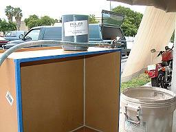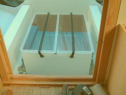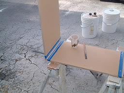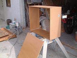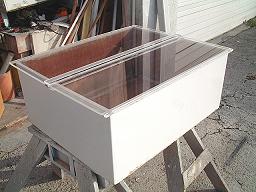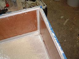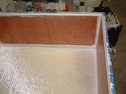 By slightly over catalyzing the gelcoat, each panel only needs to cure for about 20 minutes before it's gelled enough to turn the box to the next panel without causing a sag. In all the time comes out about the same as using a spray gun and applying 2 - 3 layers to achieve the thickness desired. Glassing It Up: