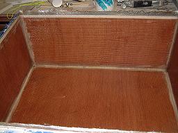 solid fiberglass. Between this strip and the next layer of biaxle, the core will be completely encapsulated in the fiberglass.