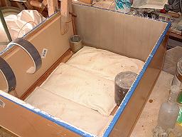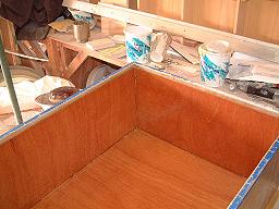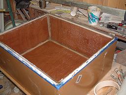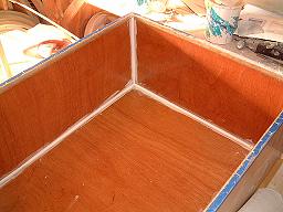 After sanding the fillets, the box and it's bottom are sealed and prepared with polyester resin. This is done