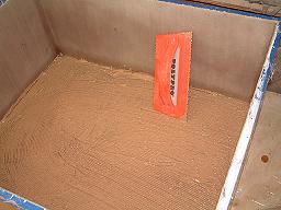Here the third core panel is bedded and clamped. Notice that the core panel is being left about 1/2&qout; below the top edge of the box.