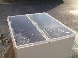 fiberglass container that has a cubical design. Water tank, fuel tank, water chest, or even