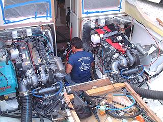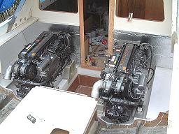 Here we are with both engines sitting in place just prior to moving "Buddy Boy" to the boat yard for final fitting before paint.