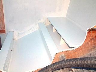 After ripping out the old bed sisters, the spaces are degreased, soap and water scrubbed, dried, and wiped liberally with denatured alcohol. At this point, I fitted gelcoated sheets of fiberglass to the hull between the stringers and outboard below where the shelves will be. The image above shows the shelves in place, but before cutting the outboard stringer to the angle required for the engines. The following diagram shows the cross section of how the beds are constructed and the aluminum ramp configuration: ![]() Below is a pair of the new sisters ready for installation. The construction is of solid hard wood and laminated with gelcoated fiberglass sheet on the inboard sides. The outboard sister has been angled and the inboard sister is the same height as the inboard stringer, Both have been angle cut at the bottom to correspond to the dead rise of the hull.
